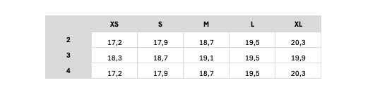 Um die richtige Größe für dich zu wählen, empfehlen wir einen direkten Vergleich mit einem gutsitzenden Teil von dir und den tabellarisch aufgelisteten Größenangaben.