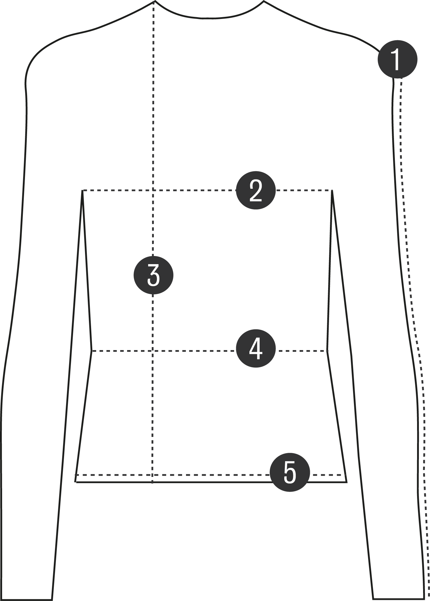 Lege das Teil flach ausgebreitet hin und miss die Breite und Länge von Naht zu Naht entsprechend der Abbildung.
