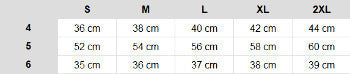 Um die richtige Größe für dich zu wählen, empfehlen wir einen direkten Vergleich mit einem gutsitzenden Teil von dir und den tabellarisch aufgelisteten Größenangaben.