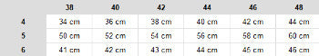 Größenangaben dieses Kleidungsstückes. In dieser Tabelle findest du die Größenangaben dieses Kleidungsstückes in Zentimetern.