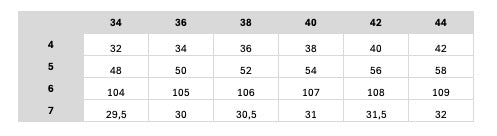 Größenangaben dieses Kleidungsstückes. In dieser Tabelle findest du die Größenangaben dieses Kleidungsstückes in Zentimetern.