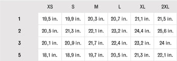 Um die richtige Größe für dich zu wählen, empfehlen wir einen direkten Vergleich mit einem gutsitzenden Teil von dir und den tabellarisch aufgelisteten Größenangaben.