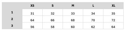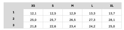 Um die richtige Größe für dich zu wählen, empfehlen wir einen direkten Vergleich mit einem gutsitzenden Teil von dir und den tabellarisch aufgelisteten Größenangaben.