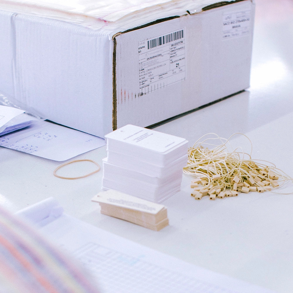 Auch für unsere Außenetiketten entscheiden wir uns für nachhaltige Materialien wie recyceltes Papier und Plastik, das nur auf dem Siegel des Etiketts zu finden ist, sowie Baumwollgarn.